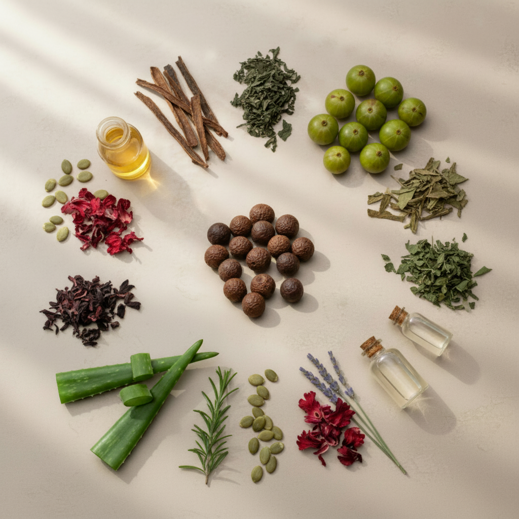 Crafted with gentle, plant-based cleansers and Ayurvedic extracts like Shikakai & Reetha to effectively remove buildup and support a clean, flake-free scalp.
